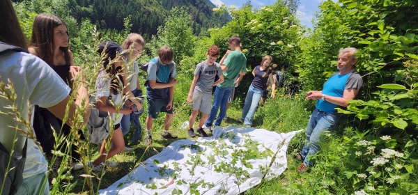 Am 17. Juni 2025 begab sich die 5A „Kugy-Klasse“ mit Kräuterpädagogin Beate Kauer einen Tag lang auf die naturkundliche Erkundung essbarer Pflanzen und Heilpflanzen auf die Pecnik-Wiese in Lepena bei Bad Eisenkappel/Železna Kapla. Anschließend werden daraus Wildkräuterpestos und Brotaufstriche kreiert.