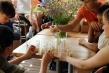 Nach dem eineinhalb stündigen Workshop zu den Wildbienen in der Streuobstwiese des Vinkl-Hofes startet des zweitägige Feldlabor zu den Schafen mit der Einleitung in das Führen eines permanenten Logbuches / Tagebuches.