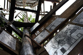 Eigens gepflanzte Weiden und Birken im Labyrinth sollten nach dem Wunsch des Künstlers den Verfall des Labyrinths der getanen Arbeit verzögern und durch ihr Wachsen die gesamte temporäre Landschaftsinstallation nach und nach zum Himmel heben. Drei Ecknischen, eine, nach alter Tradition in Form einer Andachtsecke, die zweite in Form einer nostalgisch liebevoll aufbereiteten fotografischen Zeitblende und schließlich die Erinnerung an den Krieg am Beispiel der Auslöschung der baskischen Stadt Gernika. Sie führen zur vierten Ecke, in der die Besucher das Labyrinths zurücklassen können, was sie schon immer loswerden wollten: Materielles und Immaterielles. Im Angesicht der materialisierten Vergänglichkeit fällt es leichter, sich von etwas zu trennen.